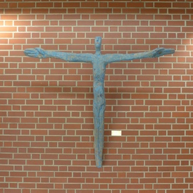Beide Bereiche zusammen bilden ein Zentrum besonderer architektonischer Prägung durch die Architekten Klumpp und Kummer und künstlerischer Ausgestaltung durch den namhaften Künstler Prof. Emil Wachter. Der Bau aus rotem Klinkerstein mit einem kleinen Kirchplatz davor öffnet sich zum Marktplatz, der zugleich Mittelpunkt des Wohngebietes Pilgerpfad ist.
